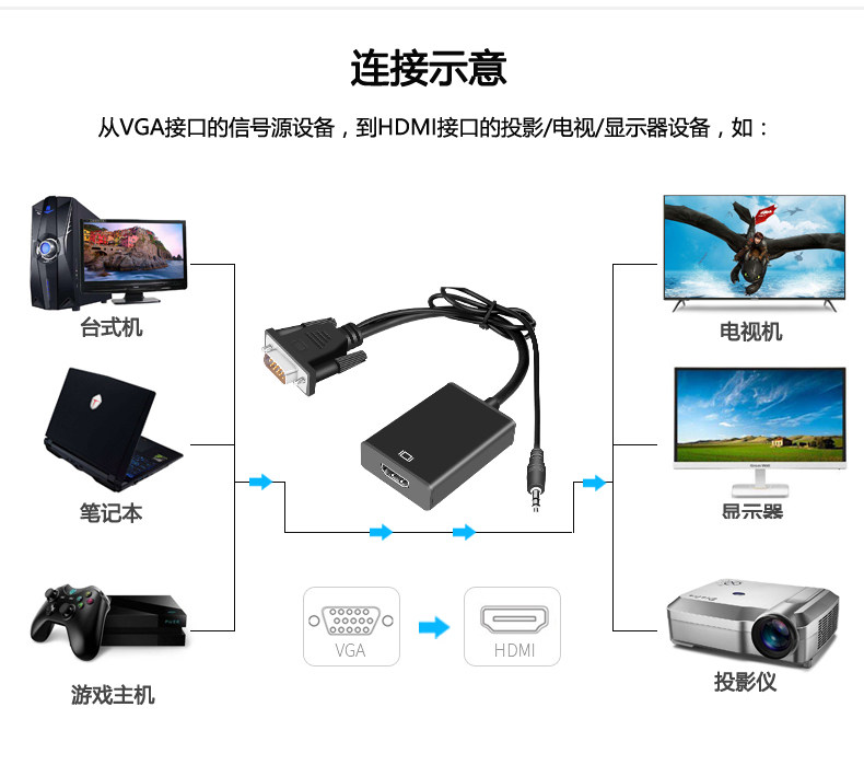 VGA转HDMI转换器带...