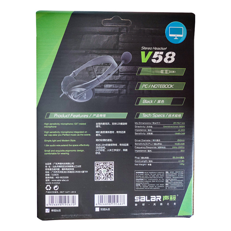 声籁 V58电脑头戴式游...